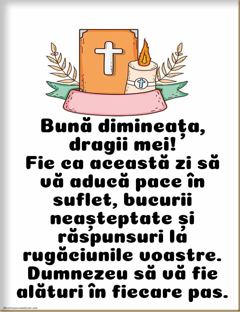 Bună dimineața! Fie ca această zi să fie plină de pace, bucurii și binecuvântări de la Dumnezeu.