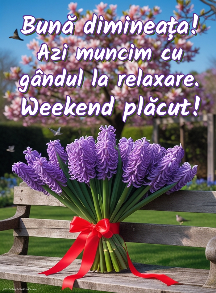Bună dimineața! Azi muncim cu gândul la relaxare. Weekend plăcut!