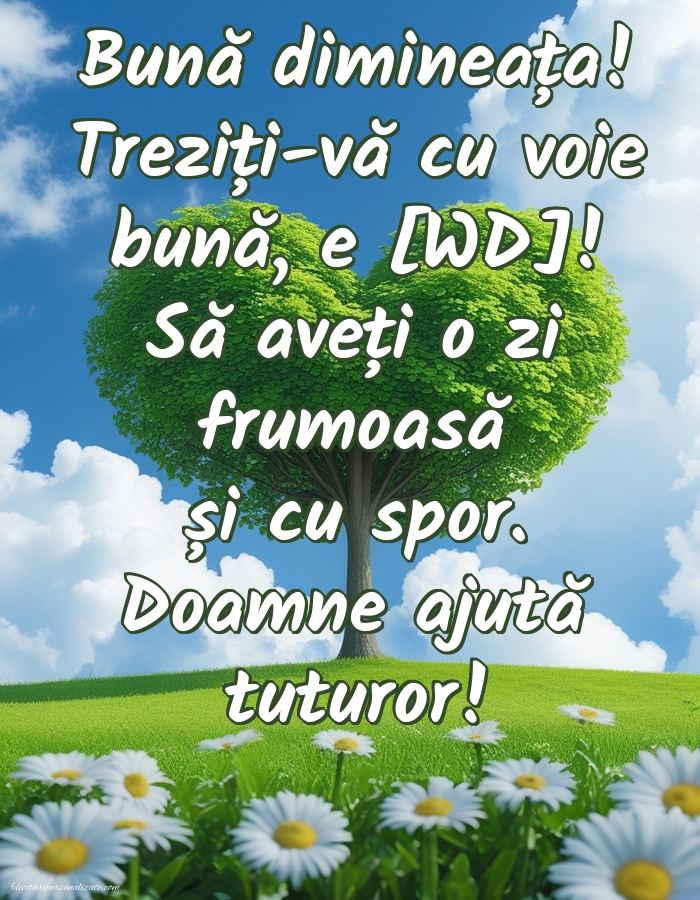 Bună dimineața! Treziți-vă cu voie bună, e [WD]! Să aveți o zi frumoasă și cu spor. Doamne ajută tuturor!