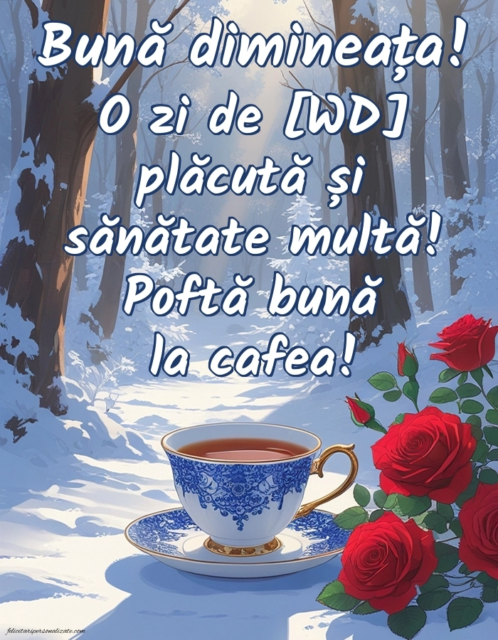 Bună dimineața! O zi de [WD] plăcută și sănătate multă! Poftă bună la cafea!