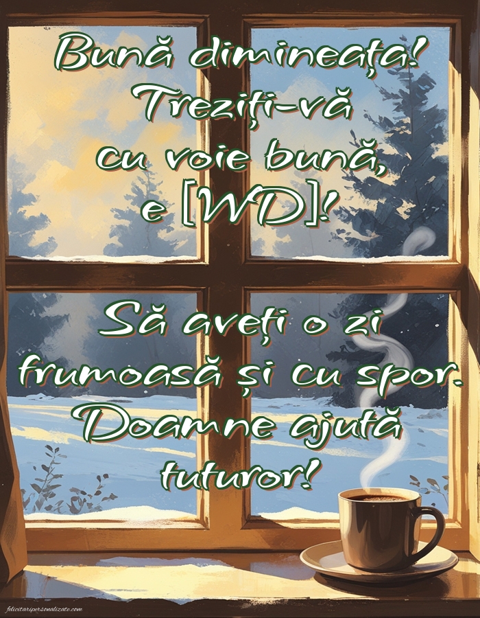 Bună dimineața! Treziți-vă cu voie bună, e [WD]! Să aveți o zi frumoasă și cu spor. Doamne ajută tuturor!