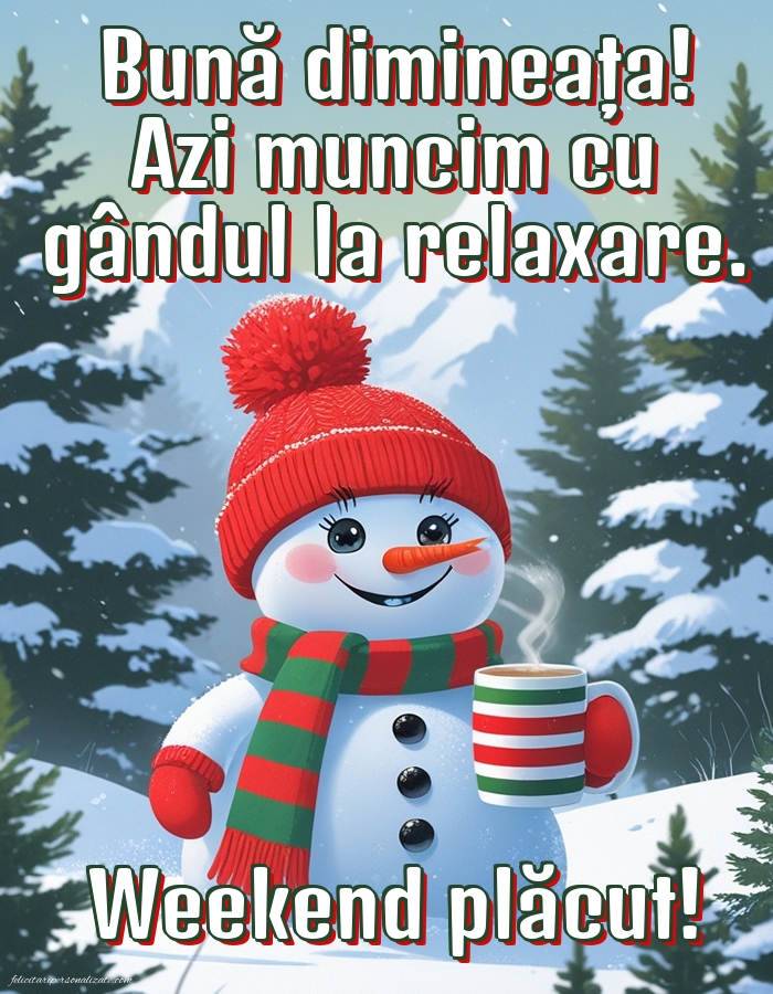 Bună dimineața! Azi muncim cu gândul la relaxare. Weekend plăcut!