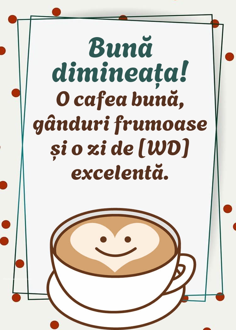 Bună dimineața! O cafea bună, gânduri frumoase și o zi de [WD] excelentă.