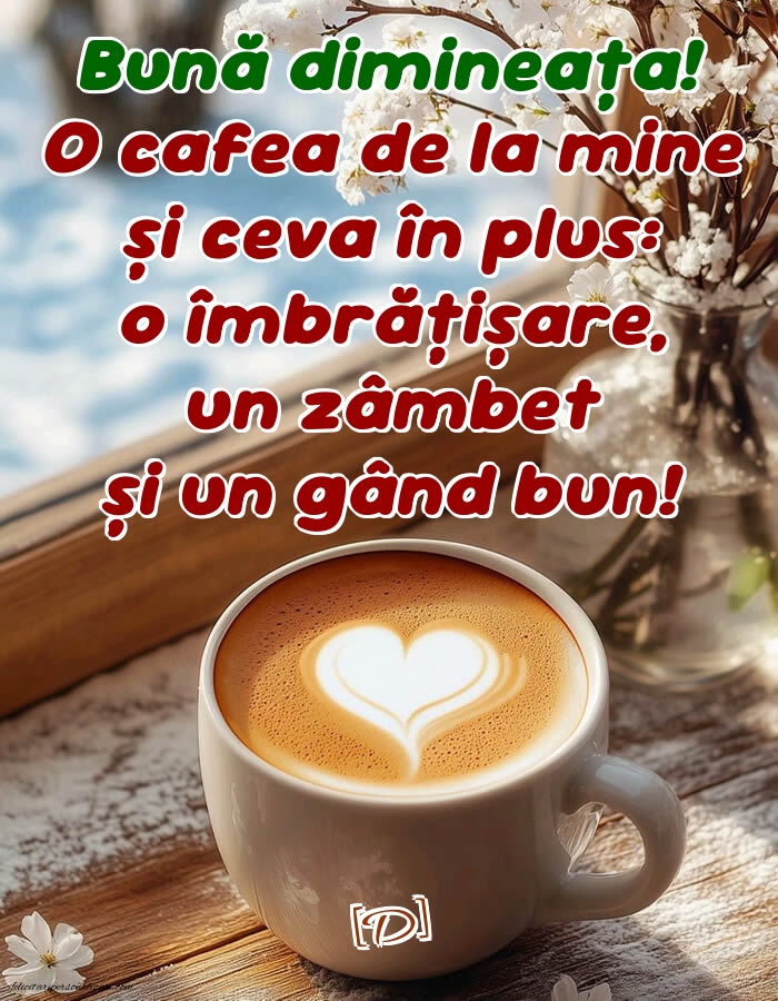 Bună dimineața! [D] O cafea de la mine și ceva în plus: o îmbrățișare, un zâmbet și un gând bun!