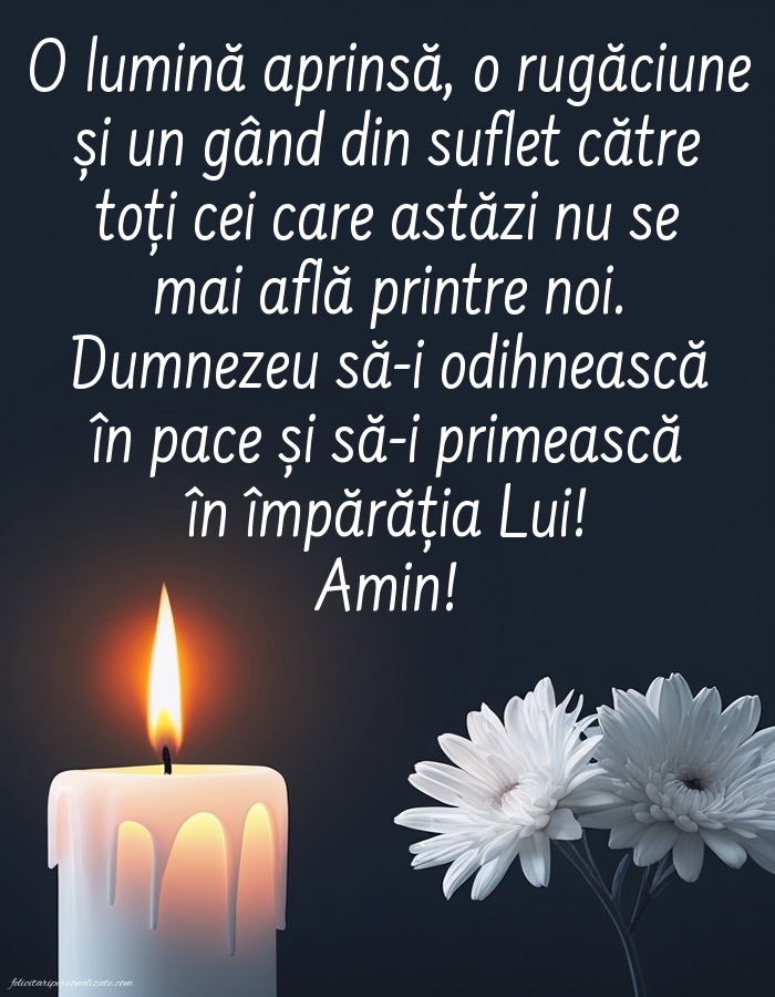 O lumină aprinsă, o rugăciune și un gând din suflet către toți cei care astăzi nu se mai află printre noi. Dumnezeu să-i odihnească în pace și să-i primească în împărăția Lui! Amin!