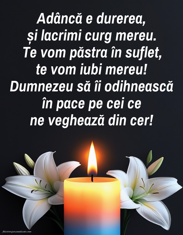 Această lumânare să fie în amintirea celor dragi, plecați mult prea devreme de lângă noi. Plecați... dar pentru totdeauna în inimile noastre. Dumnezeu să-i odihnească în pace.