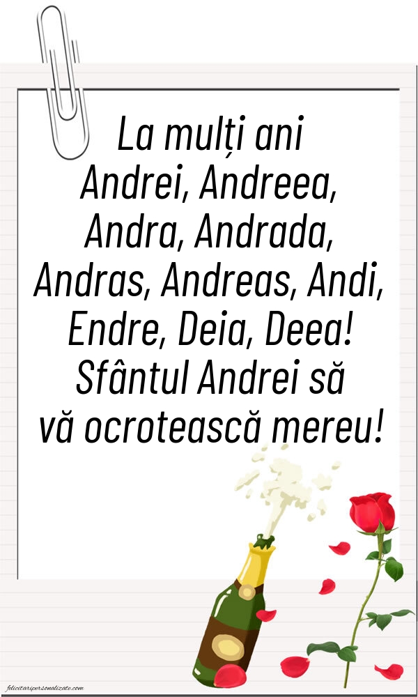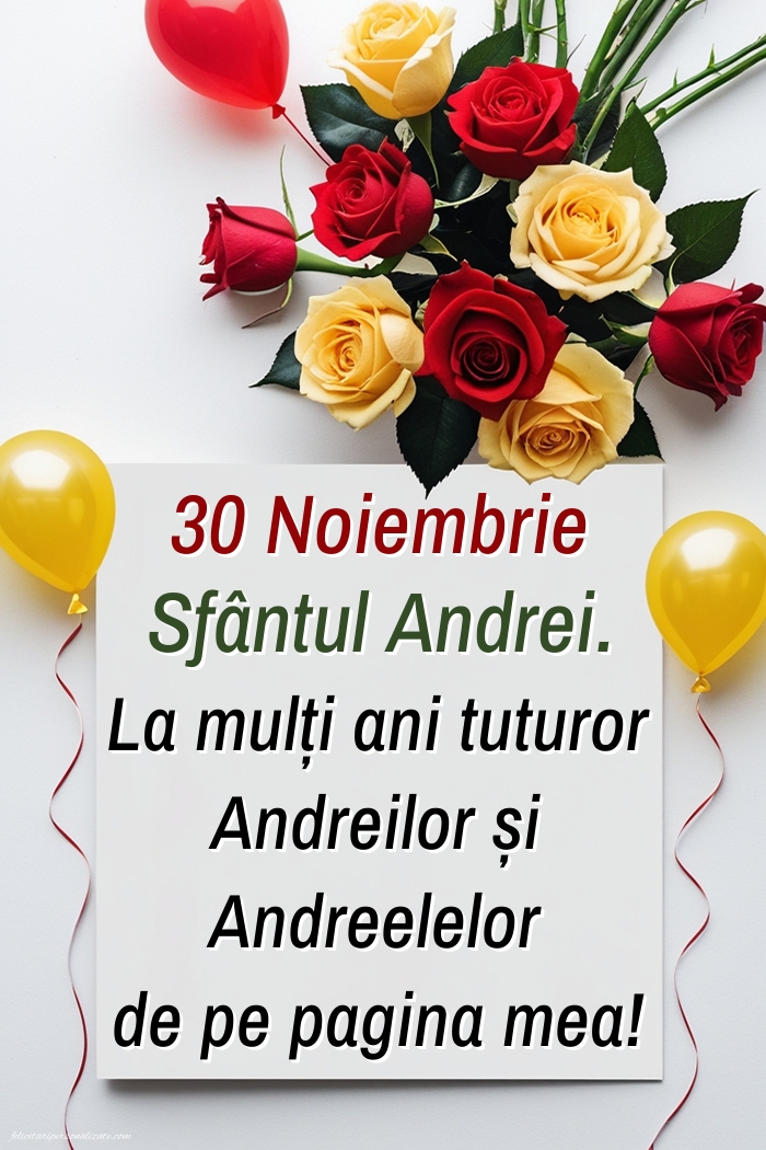 La mulți ani Andrei, Andreea, Andra, Andrada, Andras, Andreas, Andi, Endre, Deia, Deea! Sfântul Andrei să vă ocrotească mereu!
