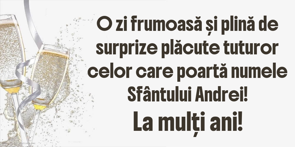 O zi frumoasă și plină de surprize plăcute tuturor celor care poartă numele Sfântului Andrei! La mulți ani!