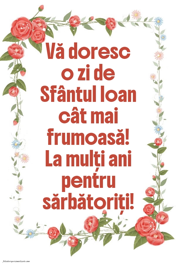 Vă doresc o zi de Sfântul Ioan cât mai frumoasă! La mulți ani pentru sărbătoriți!