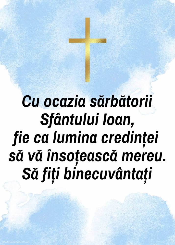 Această colecție de poze cu mesaje de Sfântul Ioan cuprinde felicitări vizuale atent realizate, cu mesaje frumoase, potrivite pentru a fi distribuite pe Facebook, WhatsApp sau trimise în privat.