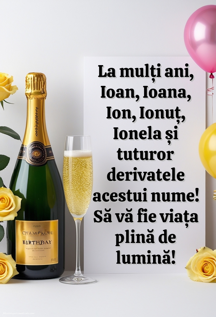 La mulți ani, Ioan, Ioana, Ion, Ionuț, Ionela și tuturor derivatele acestui nume! Să vă fie viața plină de lumină!