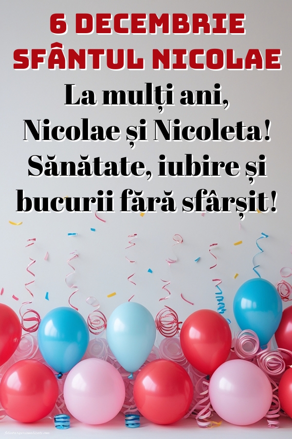 6 Decembrie - Sfântul Nicolae. La mulți ani, Nicolae și Nicoleta! Sănătate, iubire și bucurii fără sfârșit!