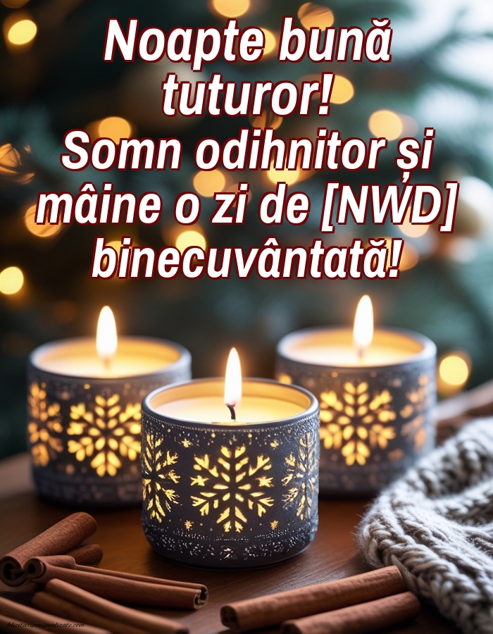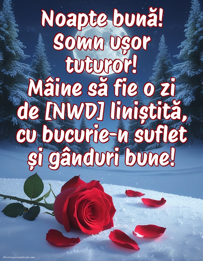 Noapte bună! Vă doresc o noapte liniștită și un somn ușor! Ziua de [NWD] să fie frumoasă și liniștită!