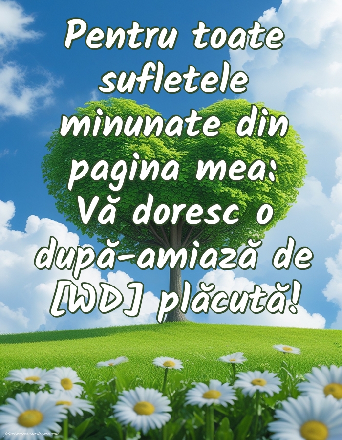 Pentru toate sufletele minunate din pagina mea: Vă doresc o după-amiază de [WD] plăcută!