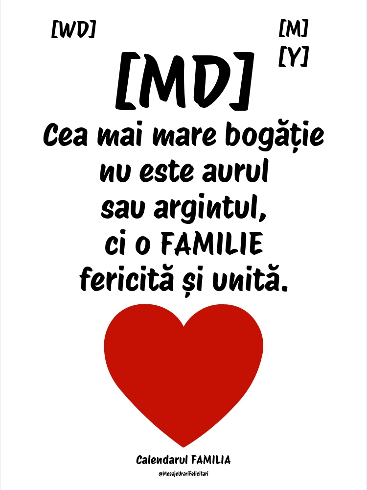 [WD][MD][M]2026 Cea mai mare bogăție nu este aurul sau argintul, ci o FAMILIE fericită și unită.