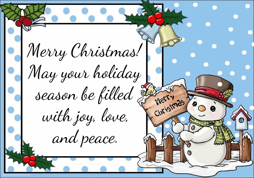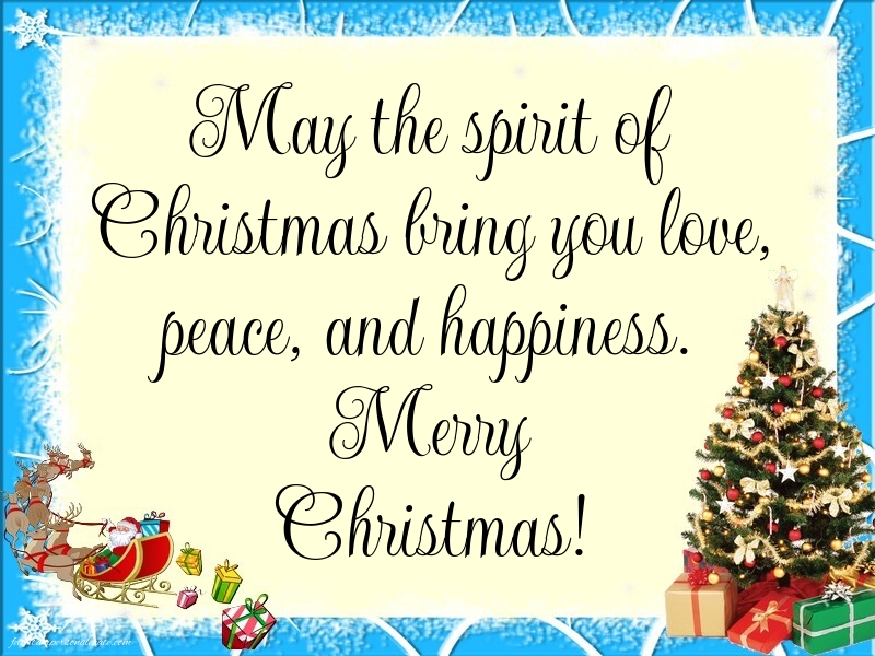 May the spirit of Christmas bring you love, peace, and happiness. Merry Christmas! (Fie ca spiritul Crăciunului să îți aducă iubire, pace și fericire. Crăciun fericit!)