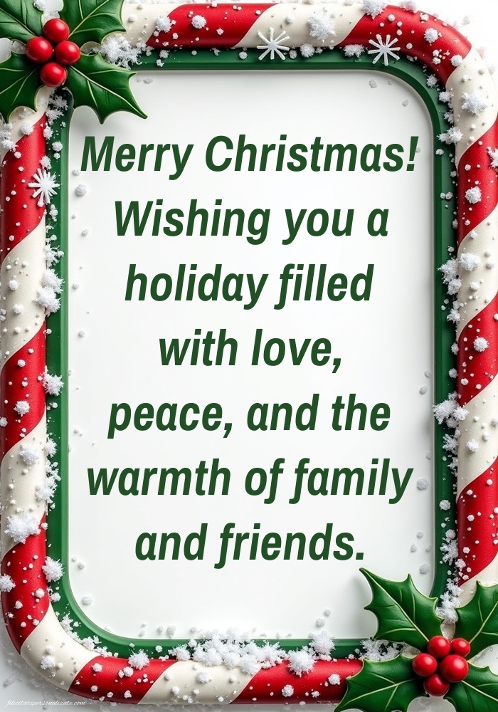 Merry Christmas! Wishing you a holiday filled with love, peace, and the warmth of family and friends. (Crăciun fericit! Îți doresc o sărbătoare plină de iubire, pace și căldura familiei și prietenilor.)