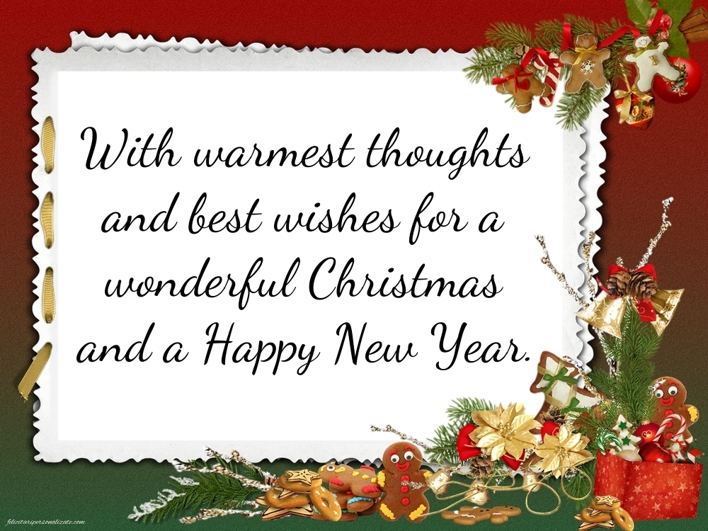 With warmest thoughts and best wishes for a wonderful Christmas and a Happy New Year. (Cu cele mai calde gânduri și urări pentru un Crăciun minunat și un An Nou fericit.)