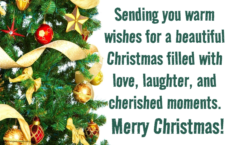 Sending you warm wishes for a beautiful Christmas filled with love, laughter, and cherished moments. Merry Christmas! (Îți trimit urări călduroase pentru un Crăciun minunat, plin de iubire, râsete și momente prețioase. Crăciun fericit!)