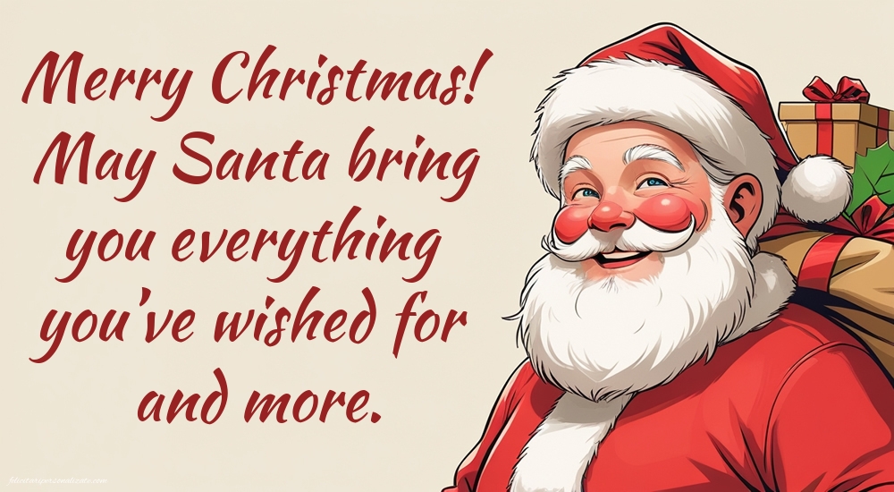 Merry Christmas! May Santa bring you everything you’ve wished for and more. (Crăciun fericit! Fie ca Moș Crăciun să vă aducă tot ce v-ați dorit și chiar mai mult.)
