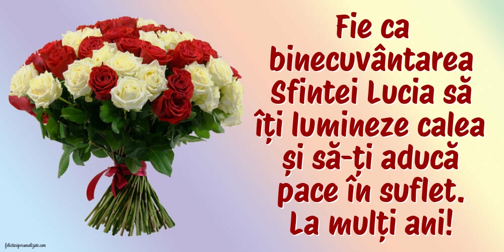 De Sfânta Lucia, îți trimit cele mai calde gânduri. Să-ți fie viața curs lin, frumos și binecuvântat. La mulți ani, Luciana!
