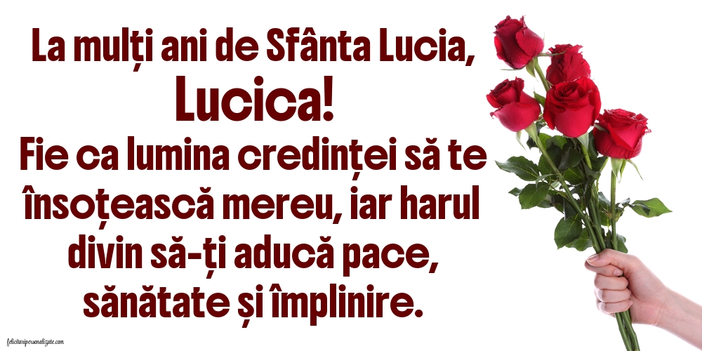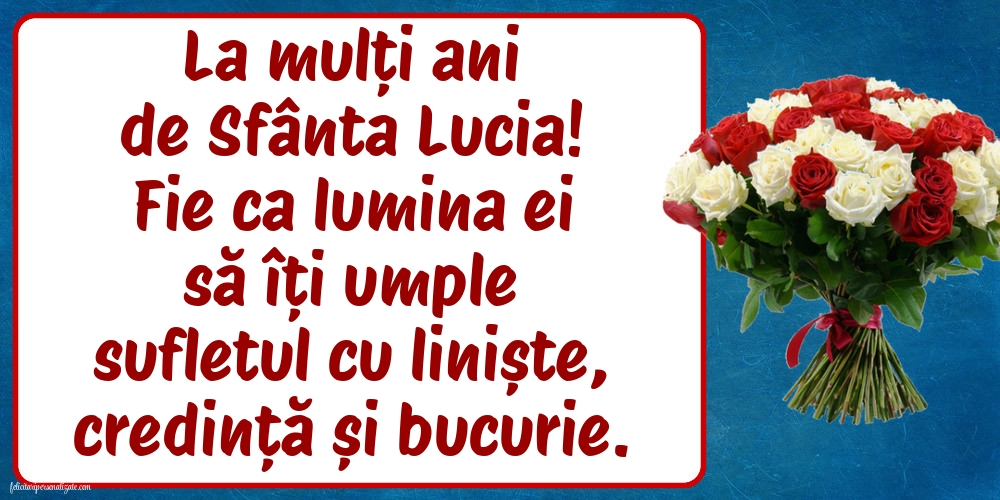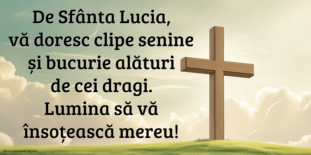 Sfânta Lucia, sărbătorită pe 13 decembrie ⭐, este simbolul luminii, al purității și al speranței. Cu ocazia acestei zile speciale, mulți oameni caută imagini cu urări și felicitări de trimis celor dragi, iar această pagină oferă o colecție variată și inspirată de imagini cu felicitări de Sfânta Lucia. Aici vei găsi poze create special pentru a transmite gânduri bune, lumină și binecuvântare către cei care poartă numele Lucia, Luciana, Lucica, Lucian sau către oricine dorești să feliciti în această zi cu semnificație spirituală. Fie că ai nevoie de imagini elegante, minimaliste, religioase, colorate sau în stil modern, colecția este concepută pentru a se potrivi preferințelor tuturor utilizatorilor.