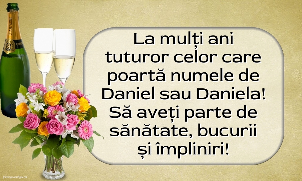 Pe 17 decembrie, sărbătorim Sfântul Daniel, ziua numelui pentru toți cei care poartă acest nume. Pentru a marca această zi specială, colecția noastră de imagini cu felicitări de Sfântul Daniel oferă modele variate și inspirate, ideale pentru a fi trimise prietenilor, membrilor familiei sau colegilor.
