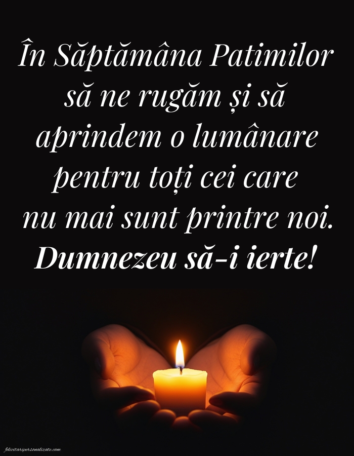 În Săptămâna Patimilor să ne rugăm și să aprindem o lumânare pentru toți cei care nu mai sunt printre noi. Dumnezeu să-i ierte!