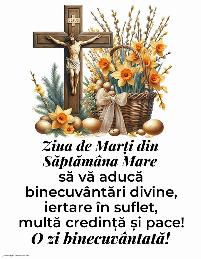 Ziua de Marți din Săptămâna Mare să vă aducă binecuvântări divine, iertare în suflet, multă credință și pace! O zi binecuvântată!