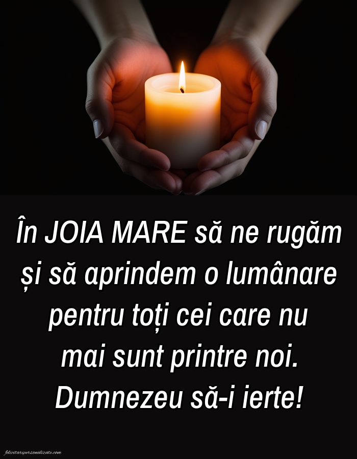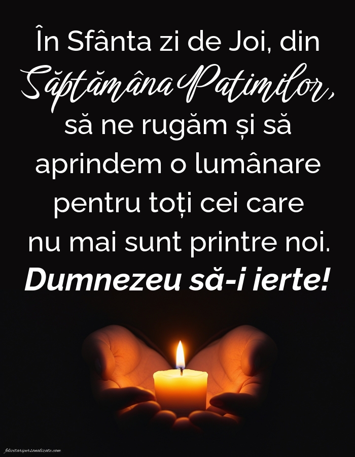 În Sfânta zi de Joi, din Săptămâna Patimilor, să ne rugăm și să aprindem o lumânare pentru toți cei care nu mai sunt printre noi. Dumnezeu să-i ierte!