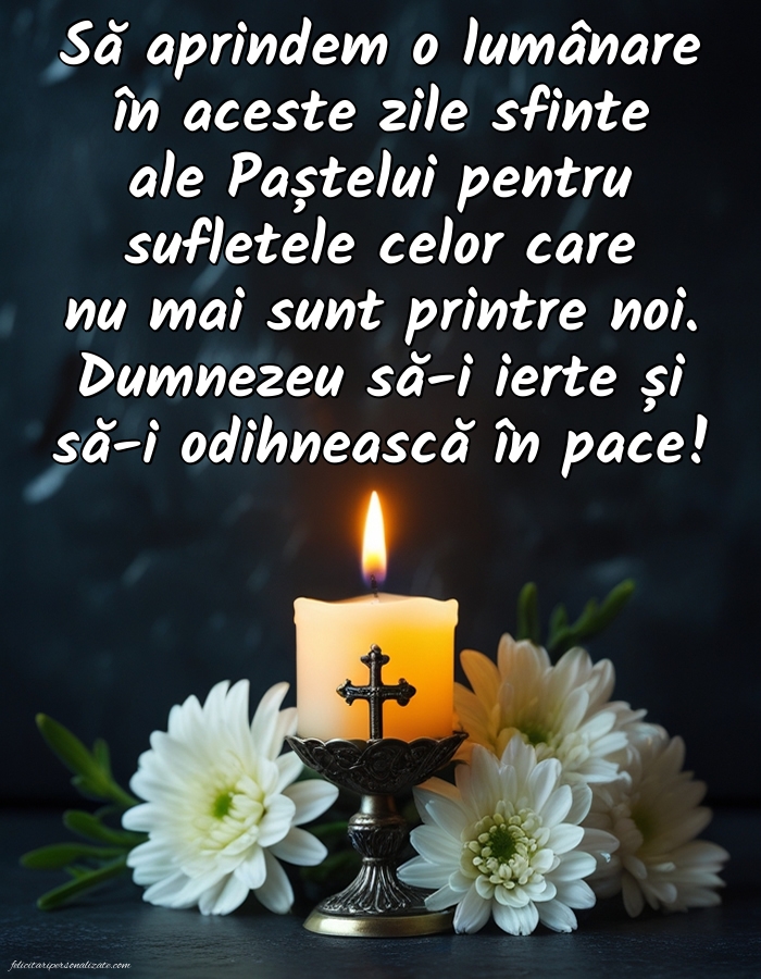 Să aprindem o lumânare în aceste zile sfinte ale Paștelui pentru sufletele celor care nu mai sunt printre noi. Dumnezeu să-i ierte și să-i odihnească în pace!
