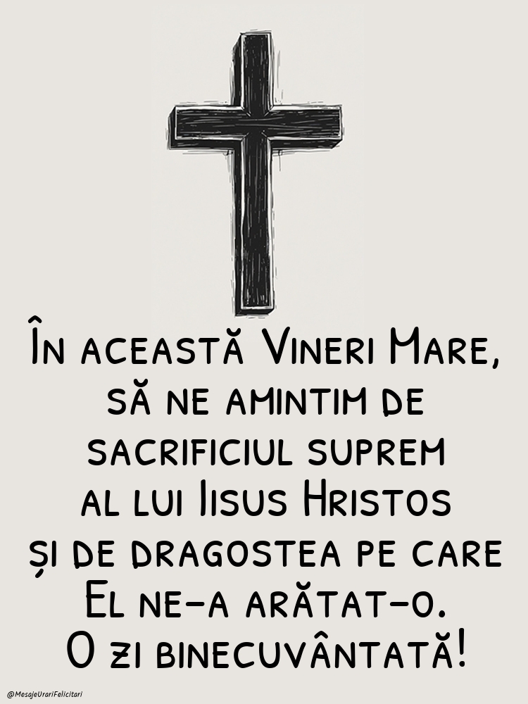 În această Vineri Mare, să ne amintim de sacrificiul suprem al lui Iisus Hristos și de dragostea pe care El ne-a arătat-o. O zi binecuvântată!