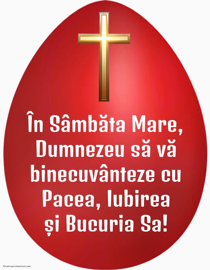 În Sâmbăta Mare, Dumnezeu să vă binecuvânteze cu Pacea, Iubirea și Bucuria Sa!
