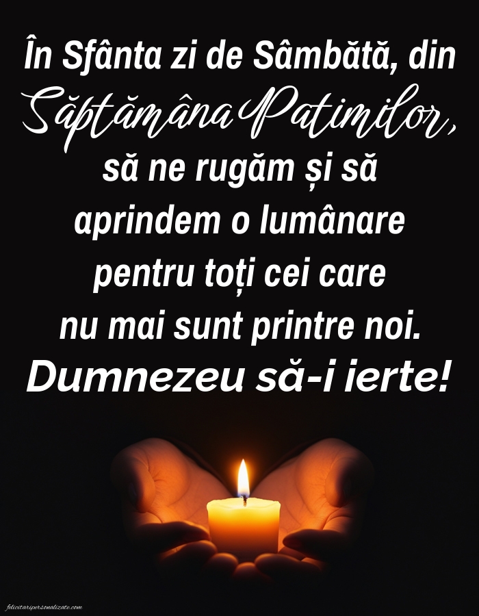 În Sfânta zi de Sâmbătă, din Săptămâna Patimilor, să ne rugăm și să aprindem o lumânare pentru toți cei care nu mai sunt printre noi. Dumnezeu să-i ierte!