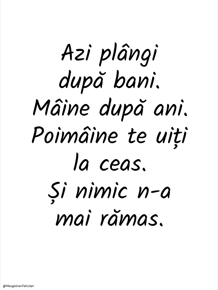 Azi plângi după bani. Mâine după ani. Poimâine te uiți la ceas. Și nimic n-a mai rămas.