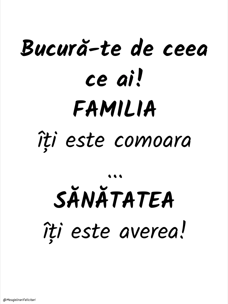 Bucură-te de ceea ce ai! FAMILIA îți este comoara... SĂNĂTATEA îți este averea!