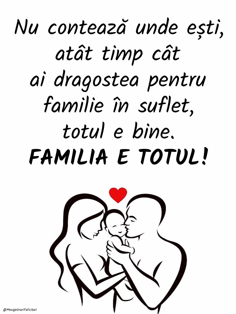 Nu contează unde ești, atât timp cât ai dragostea pentru familie în suflet, totul e bine. FAMILIA E TOTUL!