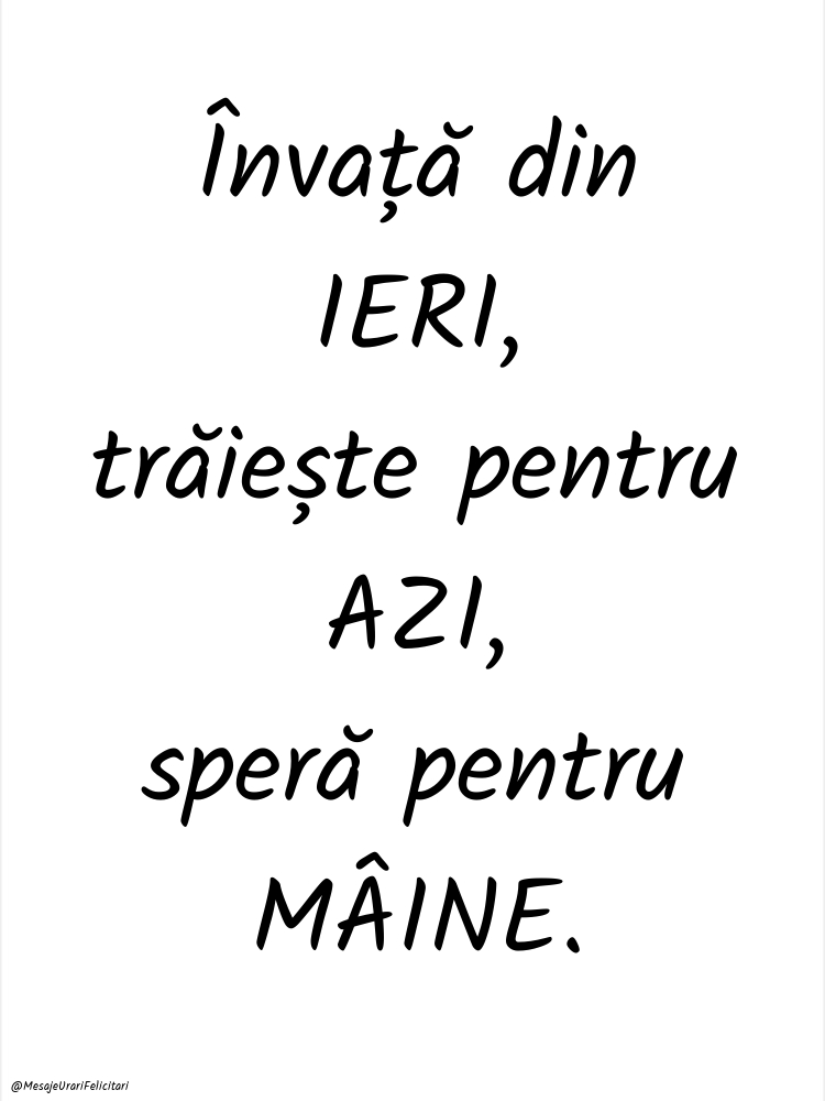 Învață din IERI, trăiește pentru AZI, speră pentru MÂINE.