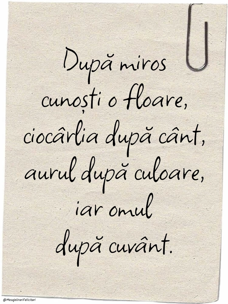 După miros cunoști o floare, ciocârlia după cânt, aurul după culoare, iar omul după cuvânt.