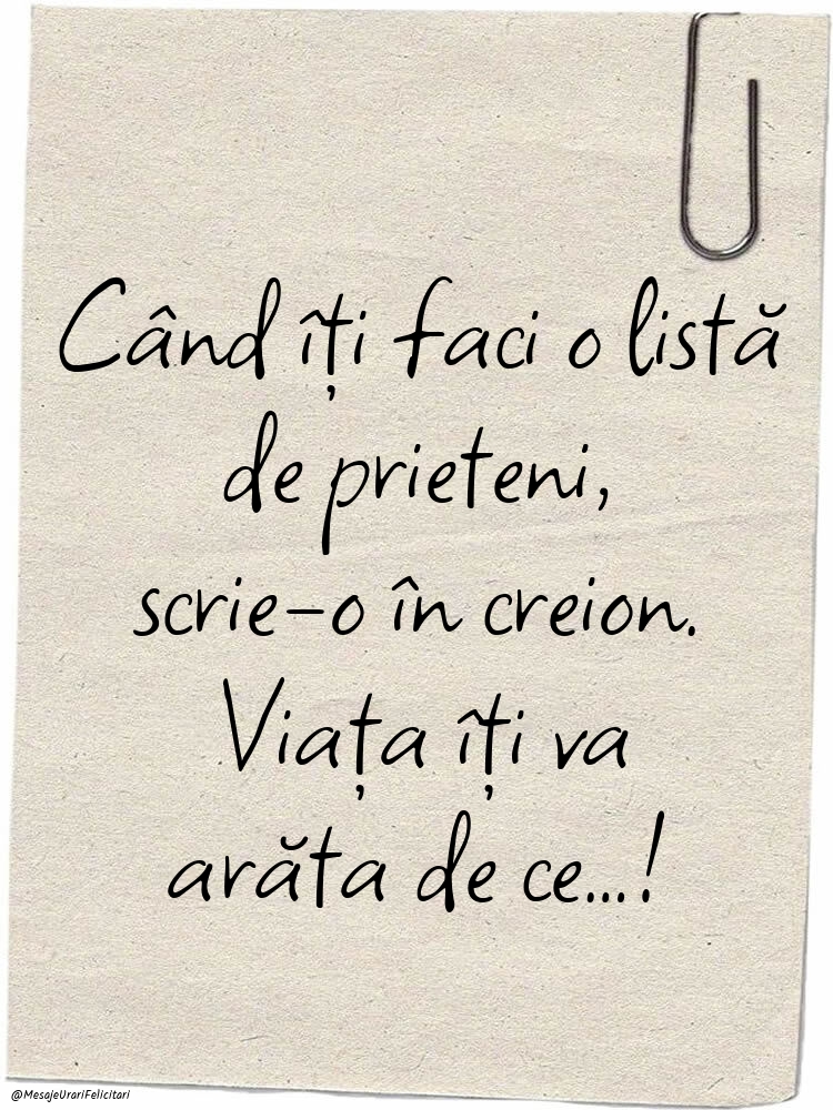 Când îți faci o listă de prieteni, scrie-o în creion. Viața îți va arăta de ce…!