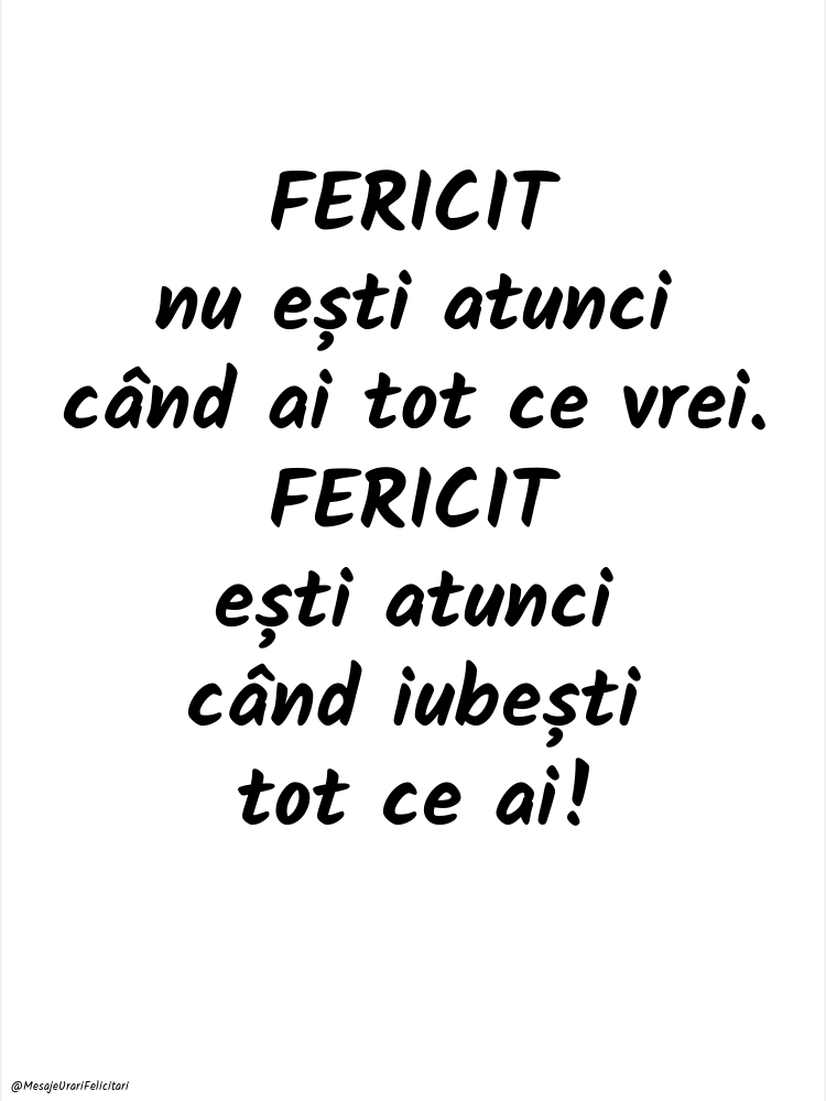 FERICIT nu ești atunci când ai tot ce vrei. FERICIT ești atunci când iubești tot ce ai!