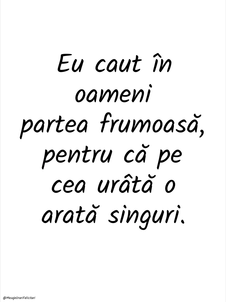Eu caut în oameni partea frumoasă, pentru că pe cea urâtă o arată singuri.