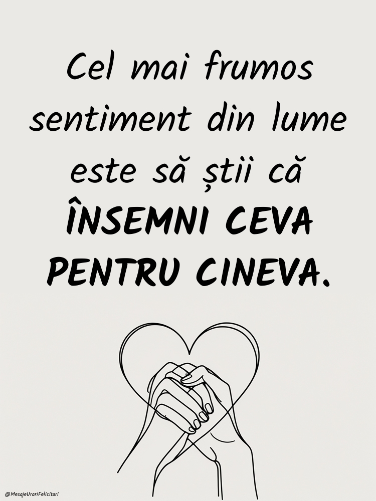Cel mai frumos sentiment din lume este să știi că ÎNSEMNI CEVA PENTRU CINEVA.