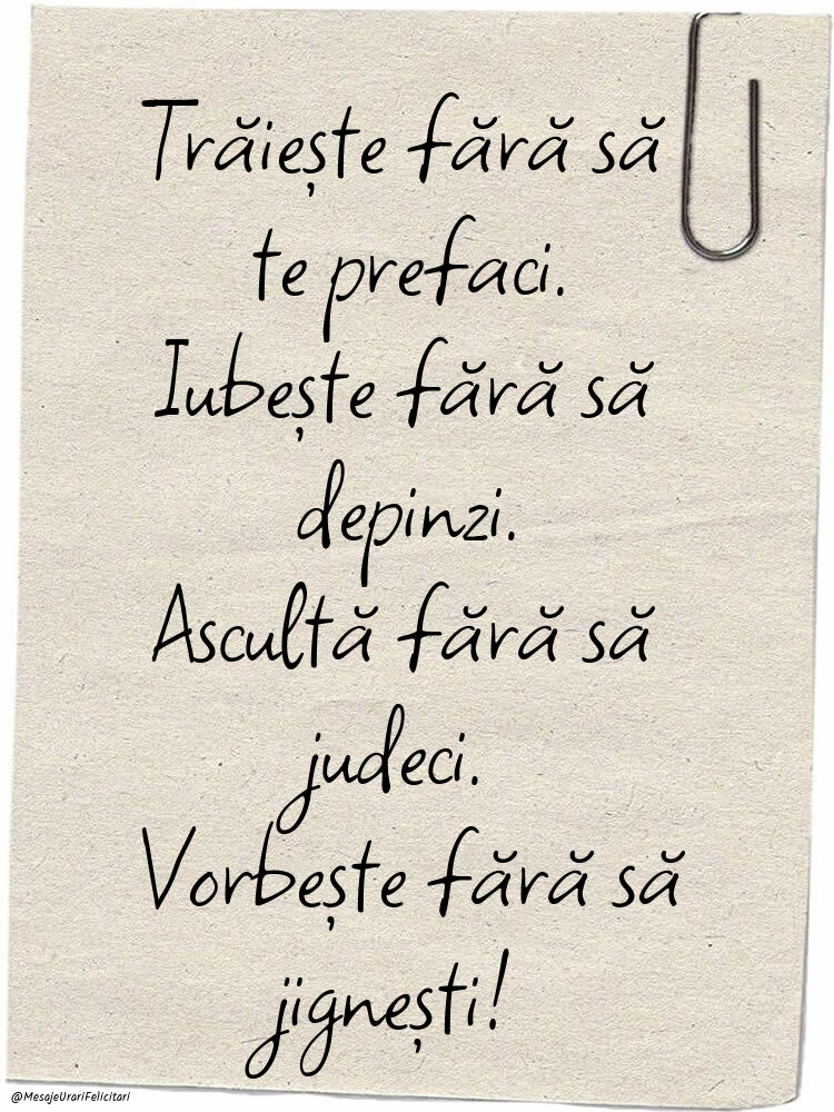 Trăiește fără să te prefaci. Iubește fără să depinzi. Ascultă fără să judeci. Vorbește fără să jignești!