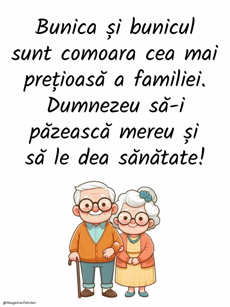Bunica și bunicul sunt comoara cea mai prețioasă a familiei. Dumnezeu să-i păzească mereu și să le dea sănătate!