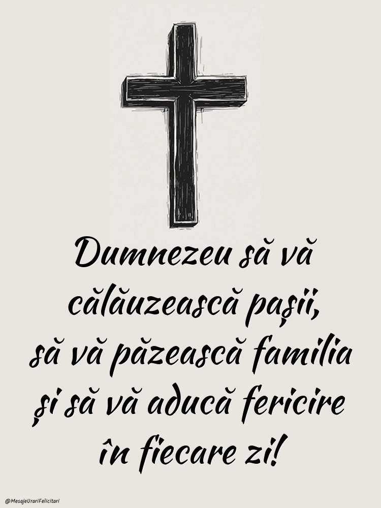 Dumnezeu să vă călăuzească pașii, să vă păzească familia și să vă aducă fericire în fiecare zi!