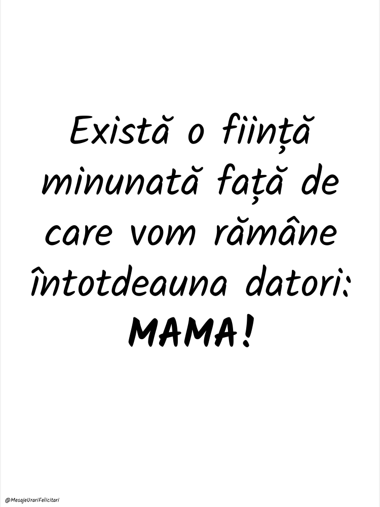 Există o ființă minunată față de care vom rămâne întotdeauna datori: MAMA!