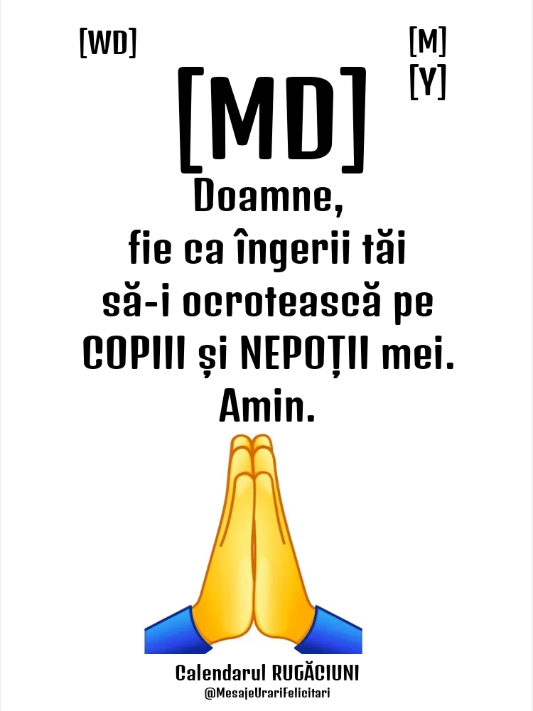[WD][MD][M]2026 Maică Sfântă, ai grijă te rog de copiii mei. Dă-le sănătate și ocrotește-i de orice primejdie. Amin.