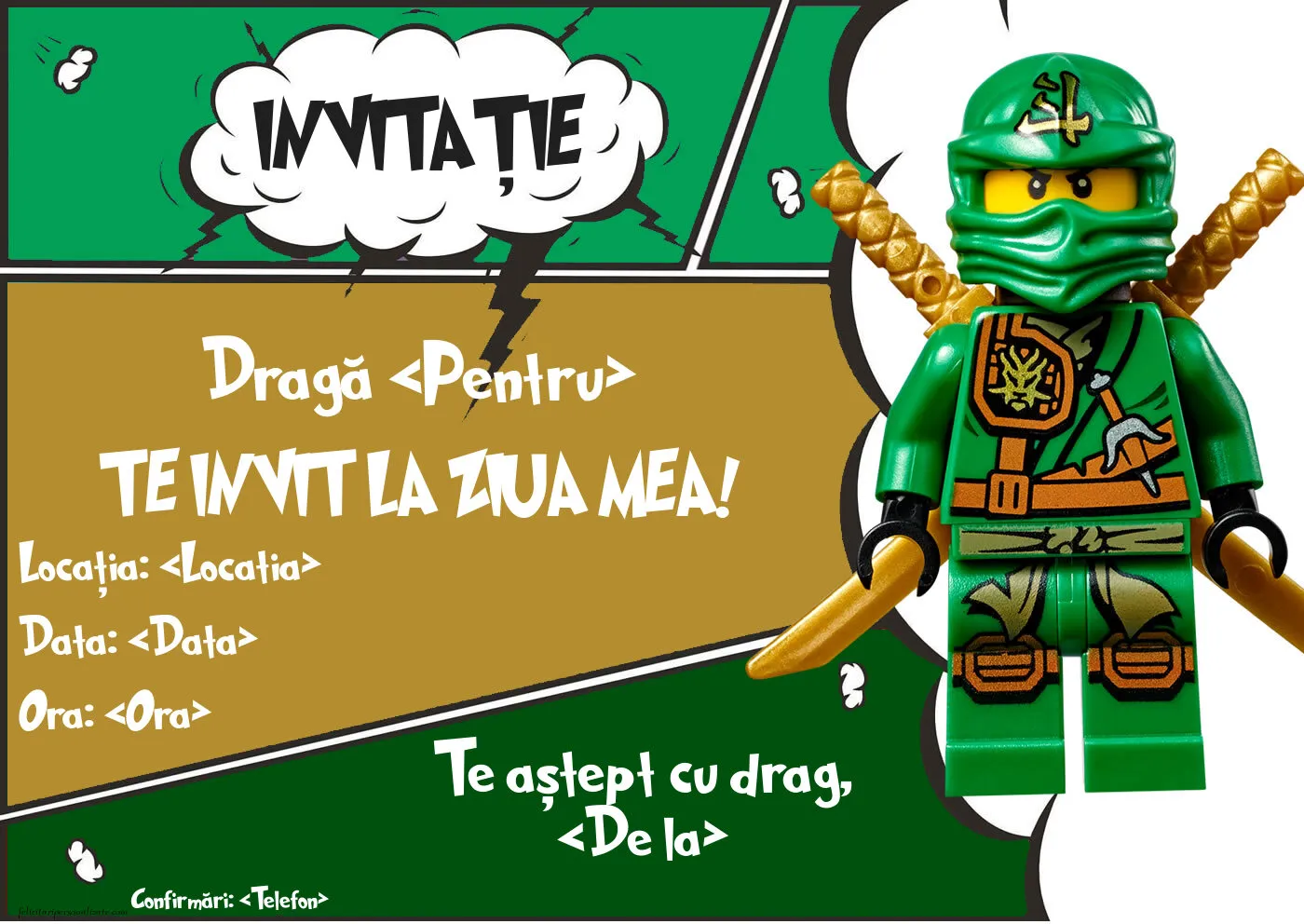 Invitație cu Ninjago (Ninja verde) | Personalizare invitatii la zi de naștere copii