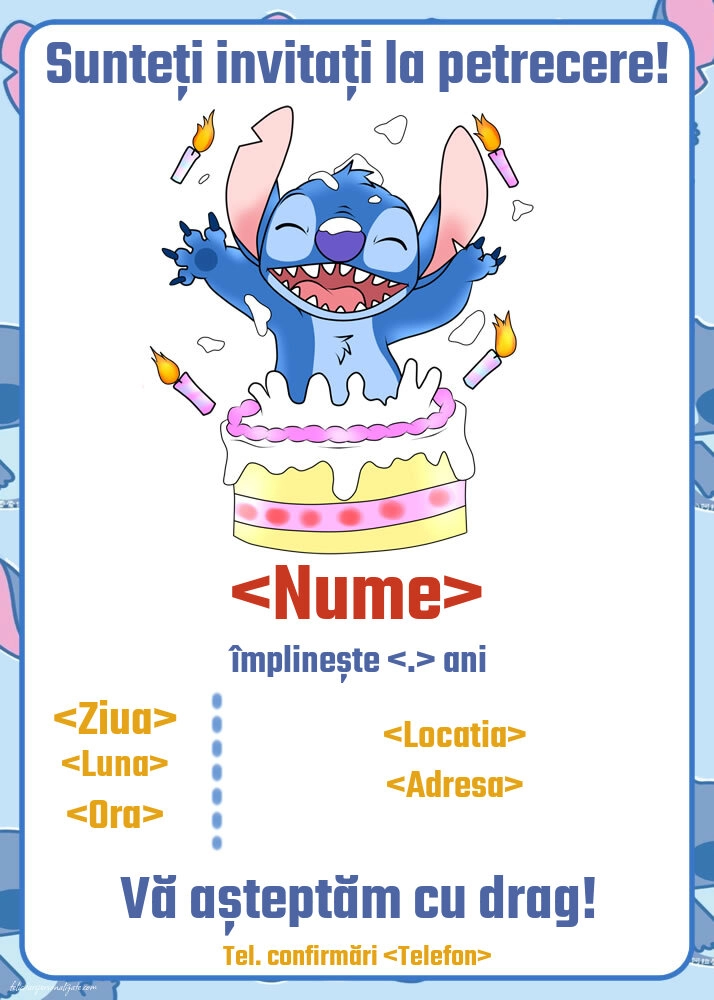 Invitație petrecere Stitch | Personalizare invitatii la zi de naștere copii